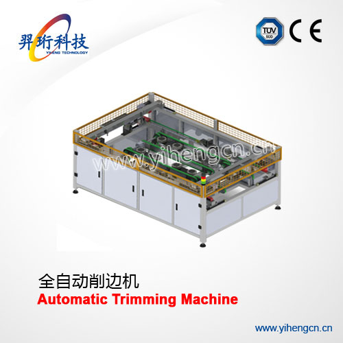 組件頂起一定的高度,設(shè)備自動(dòng)將組件四邊廢邊同時(shí)切掉,完成后組件落下、規(guī)整后傳入下一工位。