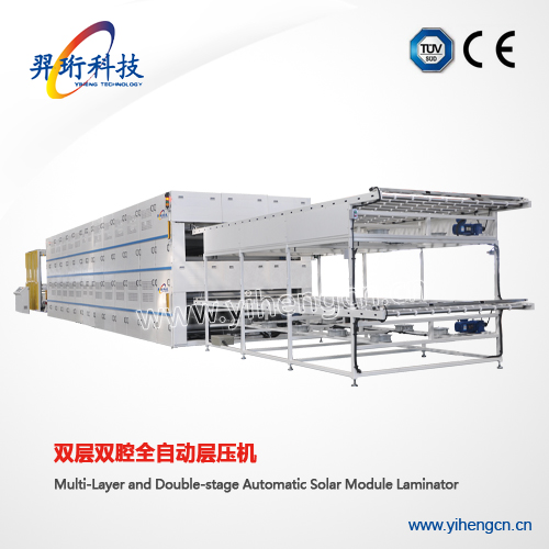 羿珩科技專利產(chǎn)品(發(fā)明名稱:疊層式層壓機(jī)。 專利號(hào):ZL 2009 1 0075057.7)100MW自動(dòng)流水線專用高效疊層全自動(dòng)層壓機(jī);