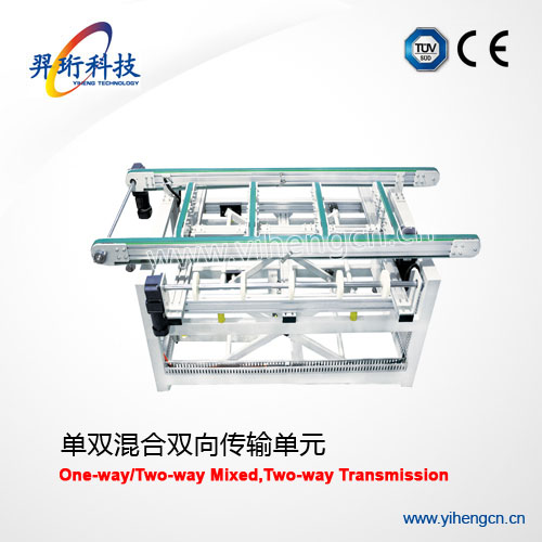 自動(dòng)完成電池板由橫向傳送到縱向傳送或由縱向傳送到橫向傳送的轉(zhuǎn)變,也可讓電池板某一方向通過,方便進(jìn)行下一環(huán)節(jié)操作。