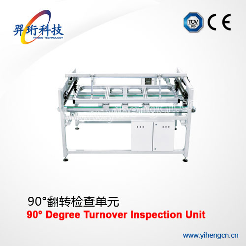 位于組件自動(dòng)線的層壓后和EL檢測前,主要功能是將層壓好的組件進(jìn)行翻轉(zhuǎn)便于操作工對(duì)組件質(zhì)量進(jìn)行檢查,操作工可以根據(jù)需要選擇手動(dòng)翻轉(zhuǎn)、自動(dòng)翻轉(zhuǎn)和無需翻轉(zhuǎn)三種功能。