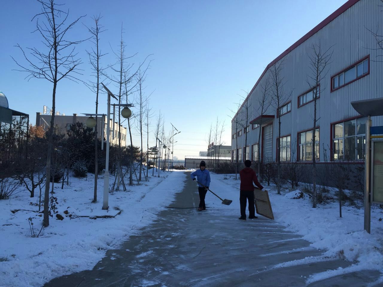 2014年12月7日秦皇島迎來了入冬以來的第一場大雪。8日清晨,厚厚的白雪覆蓋了整個(gè)廠區(qū),銀裝素裹分外美麗。為確保廠區(qū)生產(chǎn)、發(fā)貨正常進(jìn)行,羿珩科技全體員工組成了幾個(gè)小分隊(duì),劃分區(qū)域,齊心協(xié)力清掃積雪。大家干勁十足,在寒風(fēng)中相互配合,中午之前徹底完成了掃雪任務(wù)。