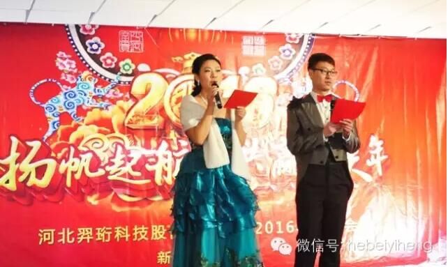 隨后,常務(wù)副總宣布“揚(yáng)帆起航.共贏猴年”2016年河北羿珩科技股份有限公司春節(jié)聯(lián)歡會(huì)正式開(kāi)始!伴隨二位主持人的激情開(kāi)場(chǎng),一場(chǎng)別開(kāi)生面的2016年新春年會(huì)就此拉開(kāi)序幕。