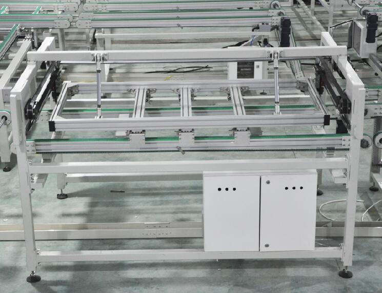 位于組件自動線的層壓后和EL檢測前,主要功能是將層壓好的組件進(jìn)行翻轉(zhuǎn)便于操作工對組件質(zhì)量進(jìn)行檢查,操作工可以根據(jù)需要選擇手動翻轉(zhuǎn)、自動翻轉(zhuǎn)和無需翻轉(zhuǎn)三種功能。